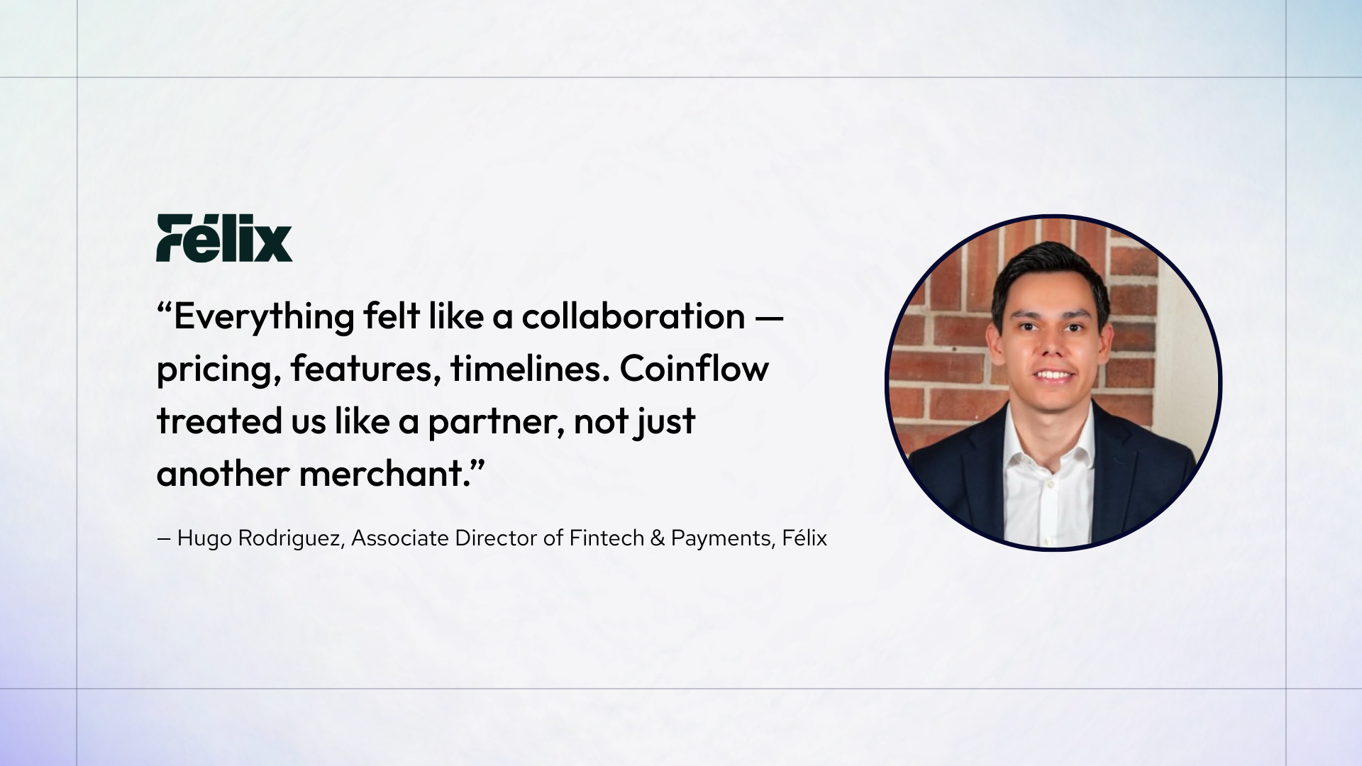 Félix discovered Coinflow through a warm introduction. When Manuel Godoy, Co-Founder and CEO at Félix, met Daniel Lev, Co-Founder and CEO at Coinflow, the conversation immediately stood out.