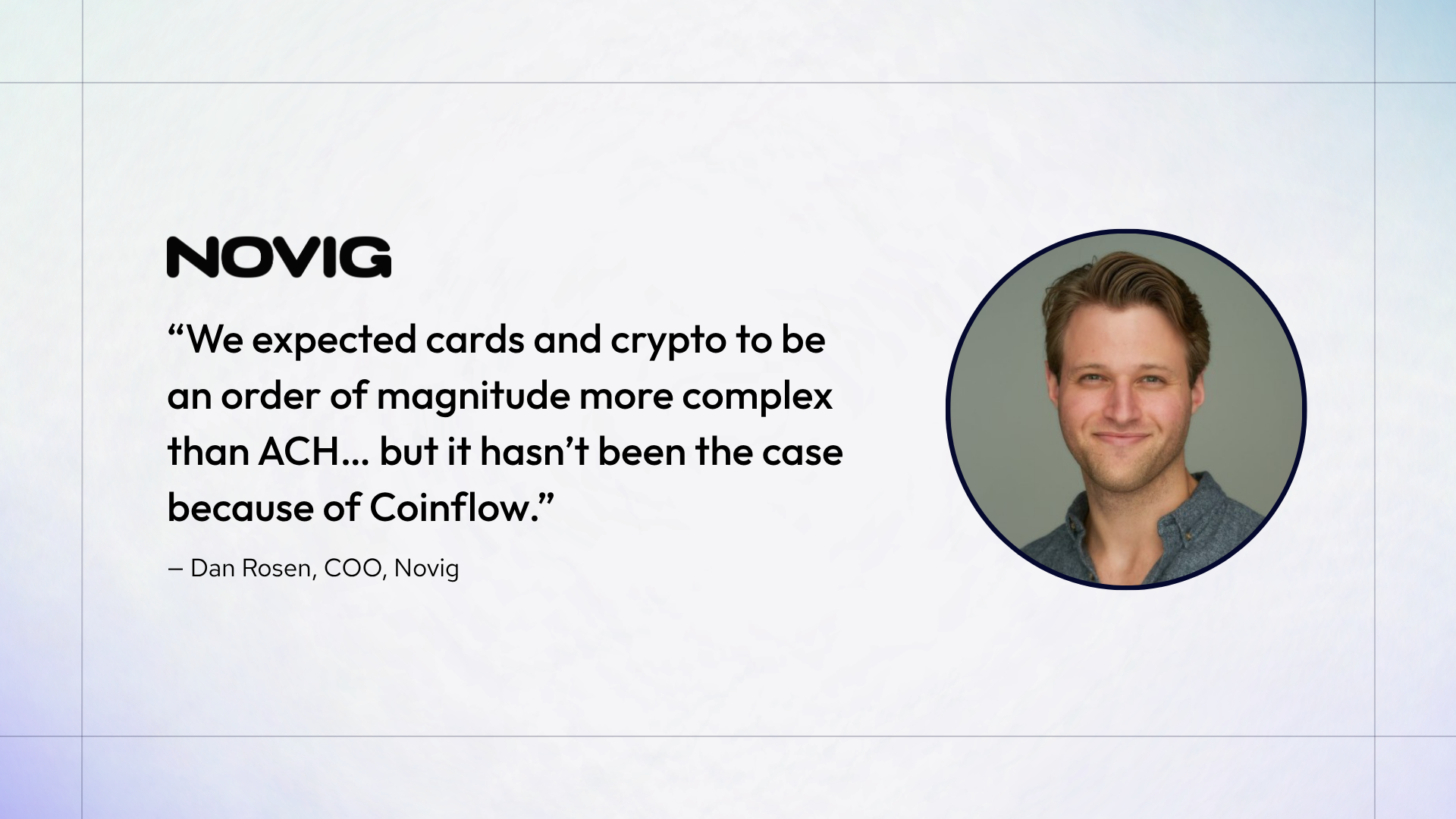 “Our team is small by design. We needed a partner that absorbed complexity instead of pushing it back onto us, and that's what Coinflow did,” said Dan Rosen, COO at Novig.