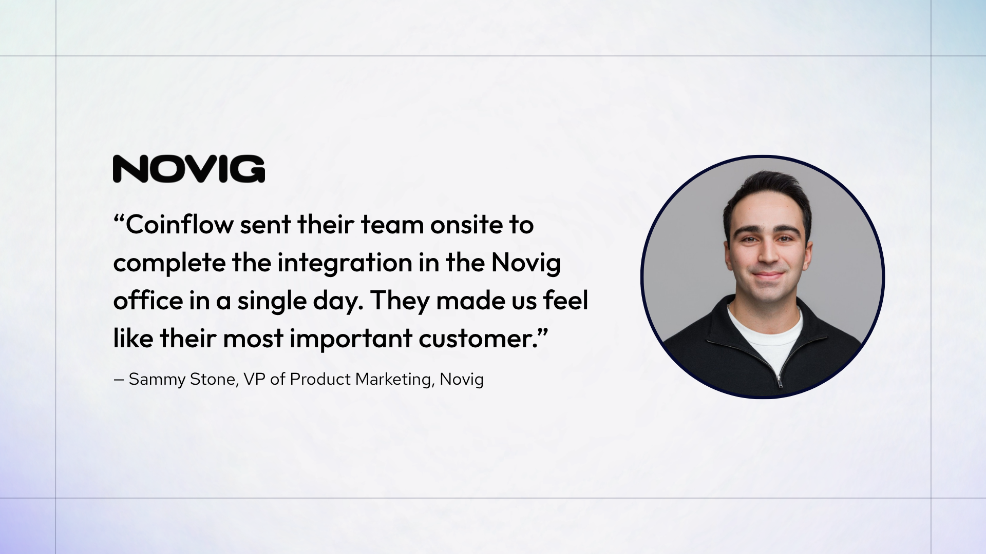 "Coinflow sent their team onsite to complete the integration in the Novig office in a single day. They made us feel like their most important customer." - Sammy Stone